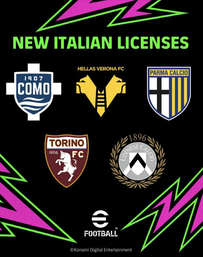 Queste aggiunte rappresentano un passo importante per Konami, che punta a offrire un’esperienza sempre più fedele e completa agli appassionati di calcio italiano, includendo club storici e squadre molto seguite anche fuori dai confini nazionali.